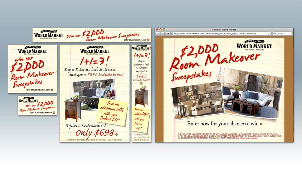 Orchard Supply HardwareOrchard Supply HardwareOrchard Supply HardwareCost Plus World MarketSweepstakes adsCost Plus World MarketSweepstakes adsCost Plus World MarketSmall rooms microsite ads3D@Cost Plus World MarketGrand opening adsCost Plus World MarketDining event adsCost Plus World MarketSeasonal adsCost Plus World MarketSeasonal adsCost Plus World MarketGrand opening adsCost Plus World MarketPromotional countdown adsCost Plus World MarketPromotional countdown adsNew Line CinemaFlash game for movie promotionVSourceAffinity InternetGate.comFlash promotional ads