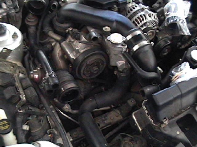 Entire air box removed.The open ~1 inch hose behind the intercooler was connected to the top (clean air) side of the air box, but it leads to an open end right under the upper radiator hose! Seems like it would take unfiltered air from the engine bay right into the clean side of the air box! What's up with that? |