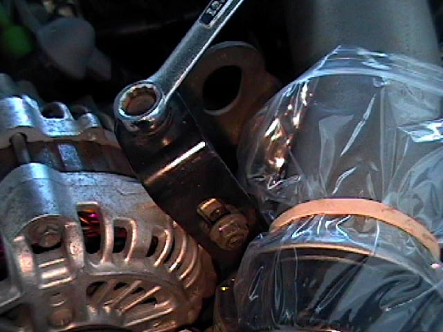 To get the belt off the air pump (out of my way), I loosened the tension from the belt at the alternator.Note: At this point, I noticed the wiring harness for the MOP is right below the elbow and next to the alternator! |