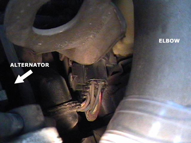 Here's a good look at the MOP wiring harness below the elbow and next to the alternator. |