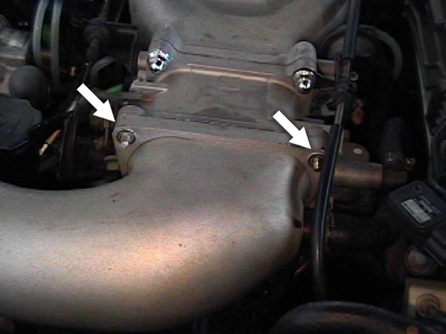 To get better access to the MOP wiring harness, I removed all four nuts from the elbow. Two are shown above, there are two more beneath the elbow. |
